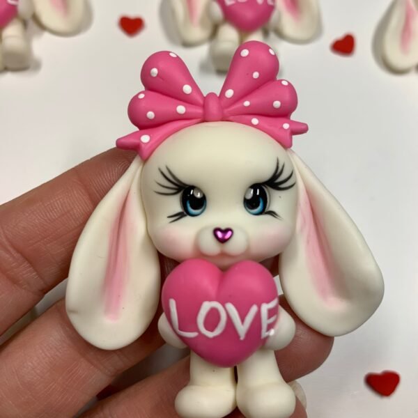 Vanilla the Love Bunny Clay Embellishment – Flat Back Clay Figurine – Valentine’s Day – Holidays