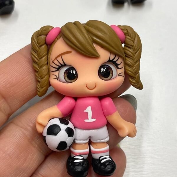 Soccer Girl Clay Figurine, Flat Back